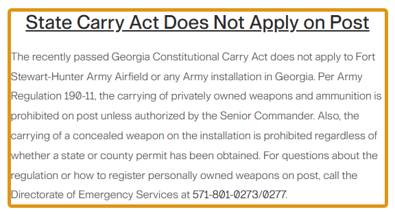 Firearms that have been registered at non-Army military installations (Navy, Marine Corps, Air Force, Coast Guard etc) will need to be registered at Ft. Stewart.